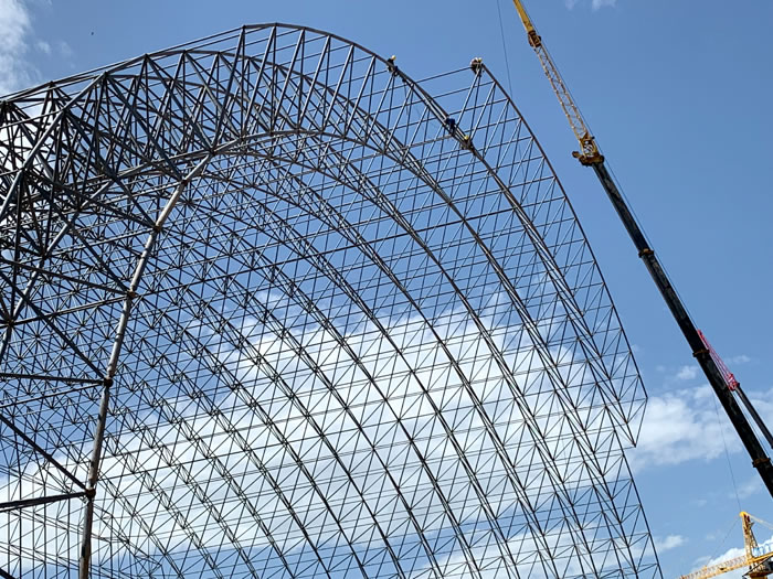 (2)网架加工前应对现场尺寸进行复测,确认无误后方可进行加工、安装;网架制作、运输、安装应遵守《空间网格结构技术规程》JGJ7-2010、《钢网架黑河螺栓球节点》JG/T 10-2009、《钢网架黑河螺栓球节点用高强度螺栓》 GB/T 16939-2016、《黑河钢结构黑河工程黑河施工规范》 GB50755-2012、《黑河钢结构黑河工程黑河施工质量验收标准》 GB50205-2020。